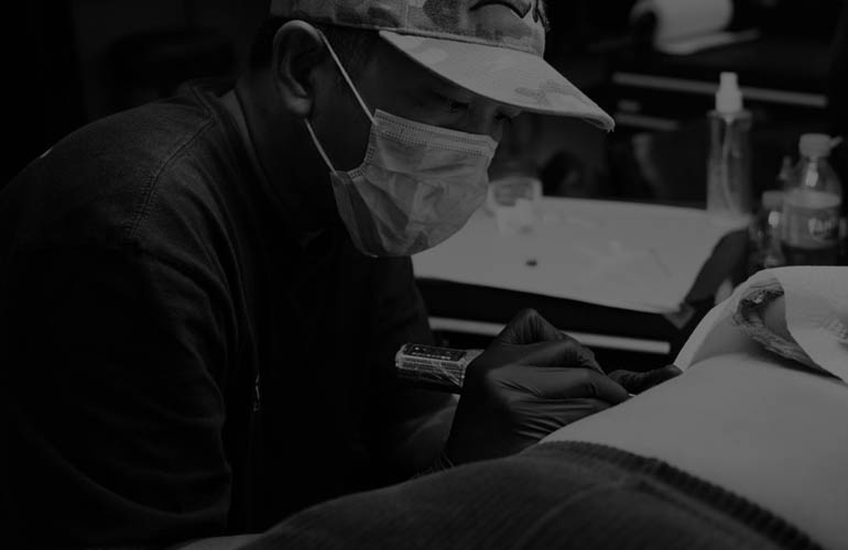 We prioritize health and safety for both our clients and artists. To ensure a safe environment, we use single-use gloves, needles, ink cups, and wrap every bottle, cable, machine, power supply, and more.